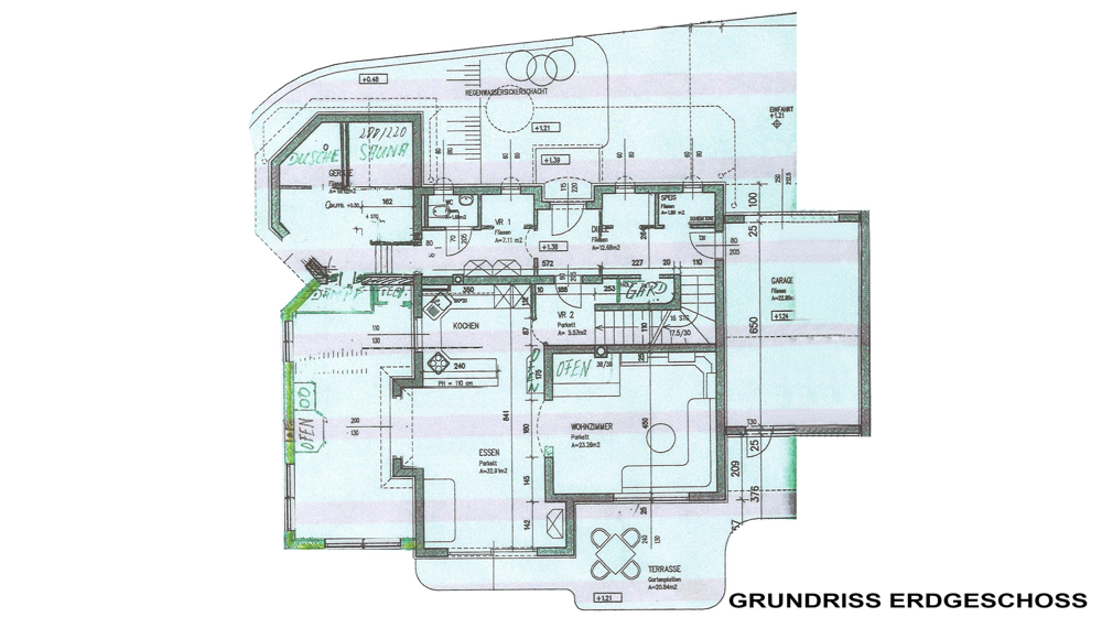 Weiters verfügt das Haus im Erdgeschoss über einen Wintergarten, einen Wellnessbereich mit Fußbodenheizung, Dampfbad, Sauna und großer Dusche. Der ca. 388 m² große Garten wurde liebevoll gestaltet und bietet dem zukünftigen Eigentümer einen fast uneinsichtigen Rückzugbereich. Im Sommer sorgt der Gartenteich für eine frische Abkühlung. Eine Außendusche (kalt/warm) sowie ein Gartenhaus sind ebenfalls vorhanden.