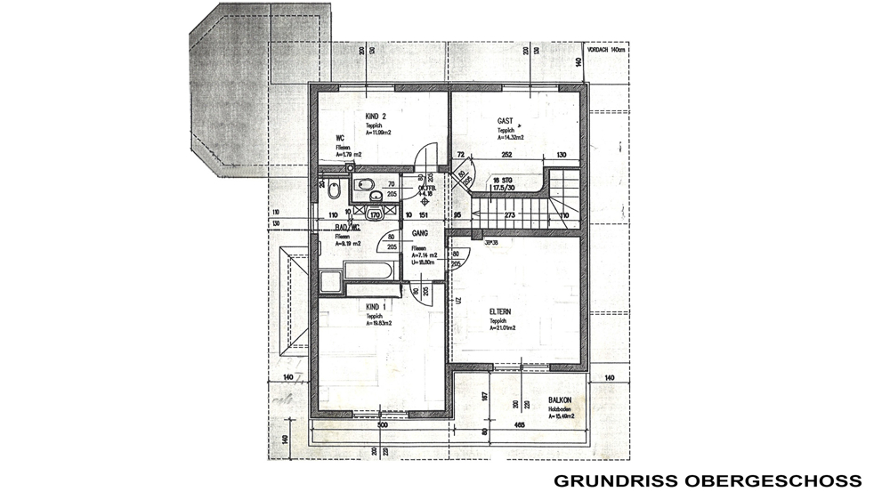 Im Dachgeschoss befinden sich vier Schlafzimmer, welche sich ein großzügiges Badezimmer mit Dusche, Badewanne und WC teilen. Ein separates WC ist ebenfalls vorhanden. Eine überdachte Terrasse und ein Balkon befinden sich auch auf dieser Etage.