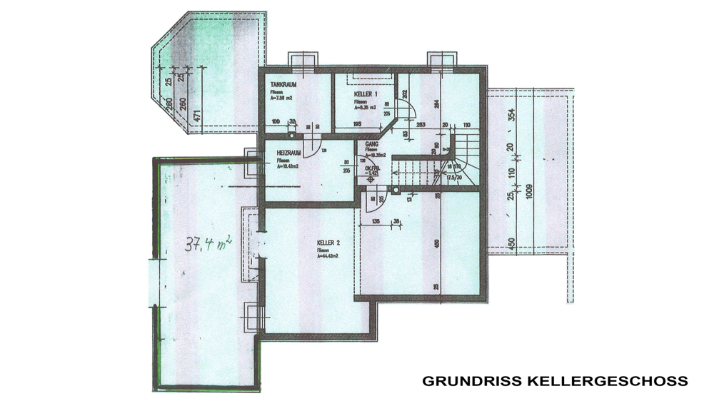 Das Untergeschoss besteht aus einem Abstellraum, dem Technikraum und zwei riesigen Freizeiträumen mit Fußbodenheizung, welche der neue Besitzer nach seinen Vorstellungen frei gestalten kann.