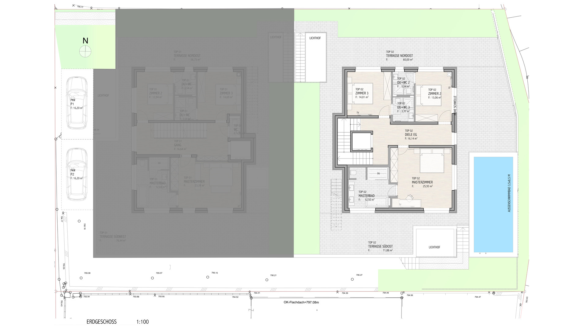 Weiters ist im Untergeschoss neben dem Eingangsbereich ein Sportgeräteraum sowie die Haustechnik und Pooltechnik vorhanden.