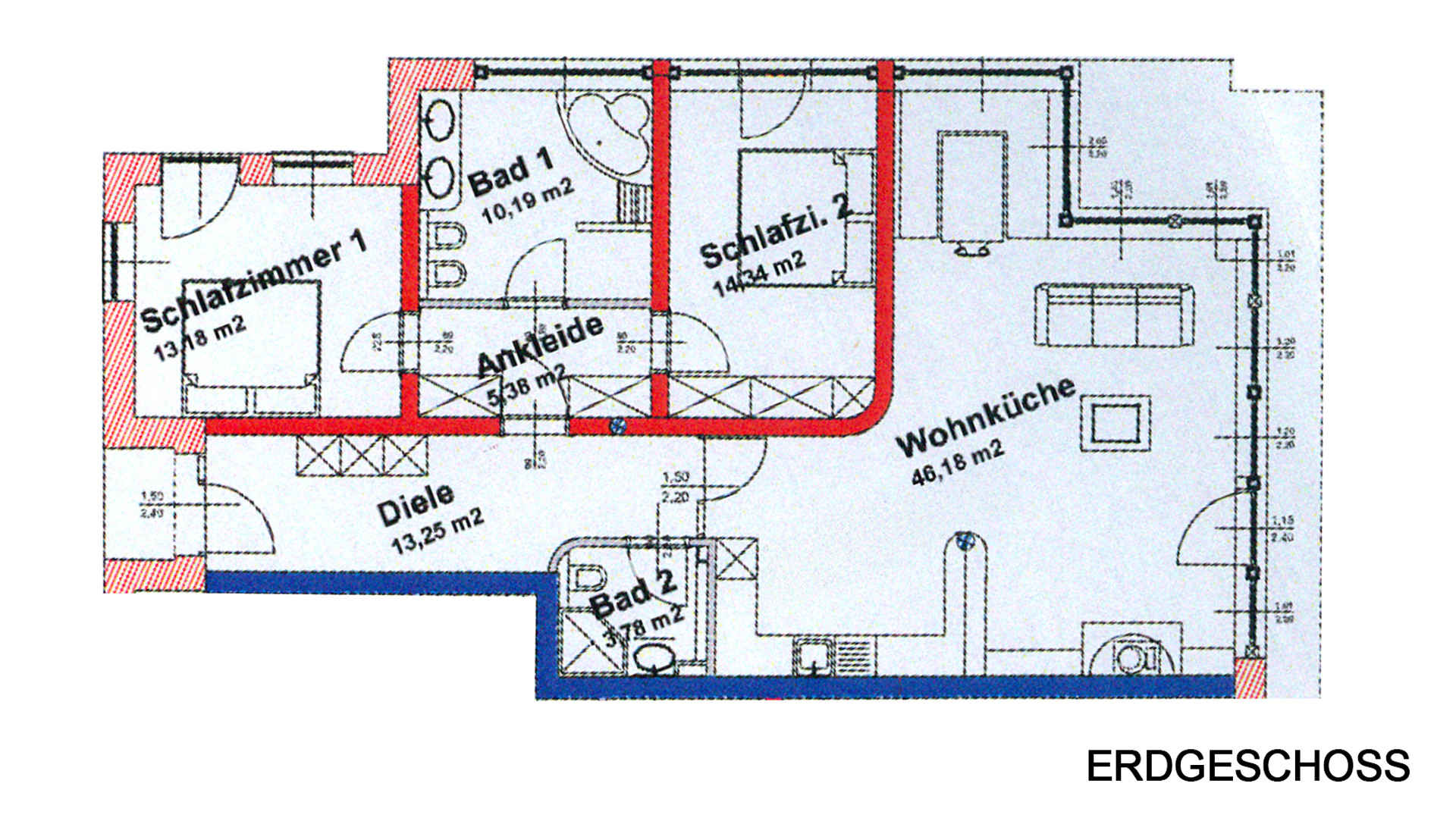 Die Wohnung wird mit einer Fußboden/Wandheizung mit Gas beheizt und wird mit allen fixen Einbaumöbeln und Ausstattungen übergeben.