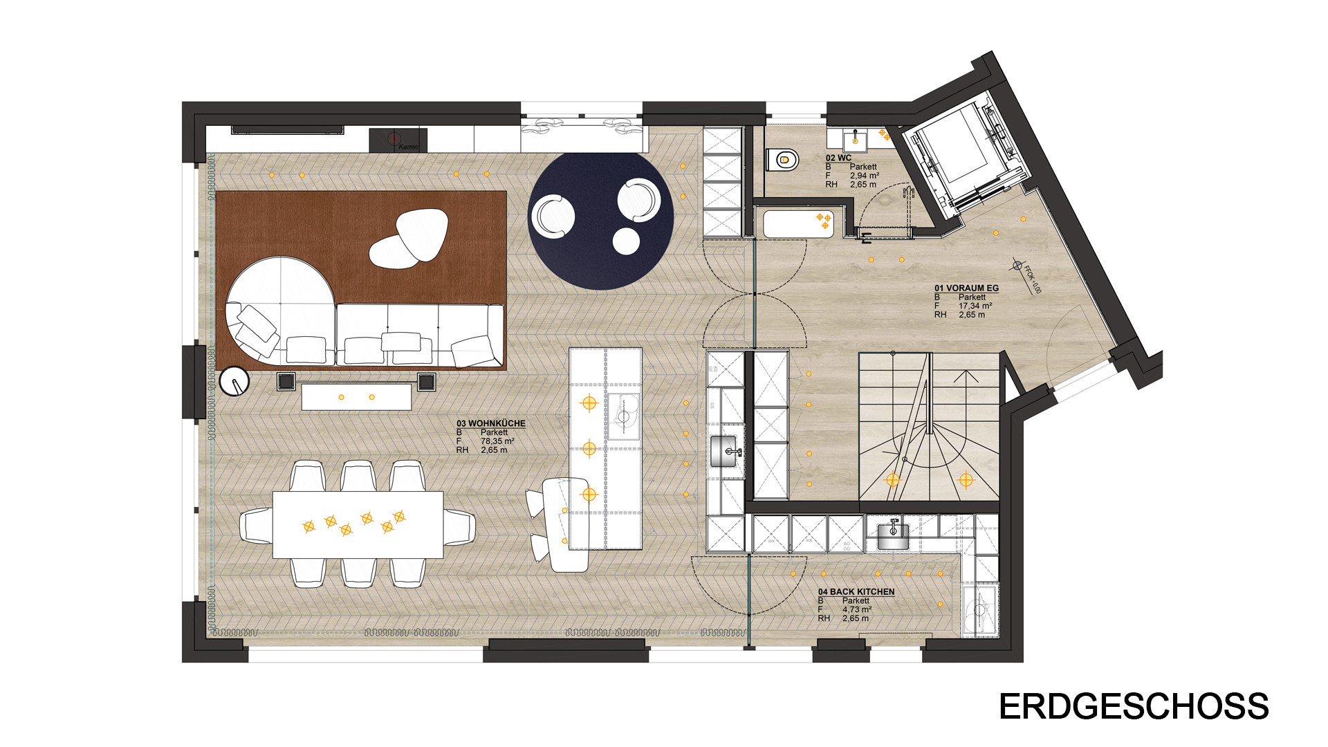 - Holzdielen- und Natursteinböden