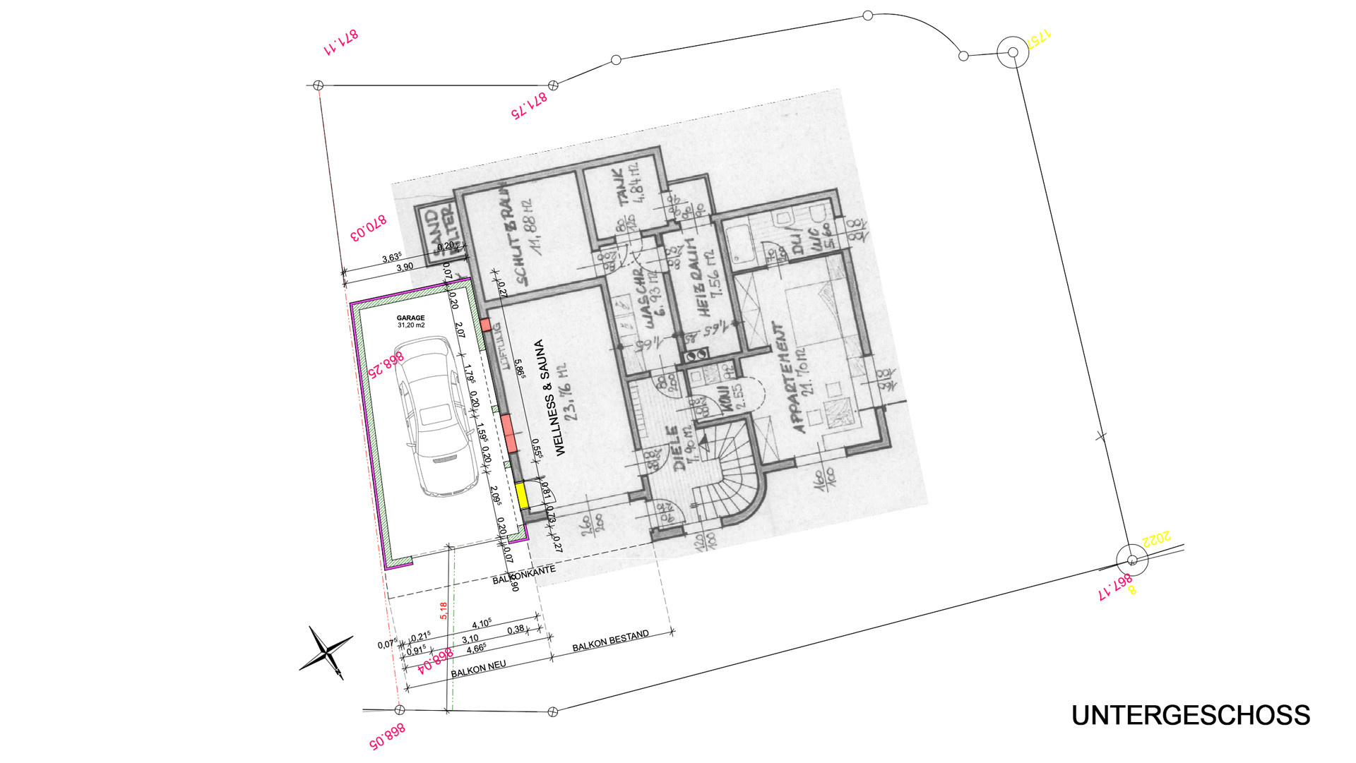 Weiters sind auf dieser Ebene der großzügige Wellnessbereich mit Dusche und Sauna, ein Gästeapartment mit Kochzeile, Sitzecke, Schlafgelegenheit und Badezimmer sowie Nebenräume wie der Hauswirtschaftsraum, der Technikraum, sowie zwei Abstellräume vorhanden.
