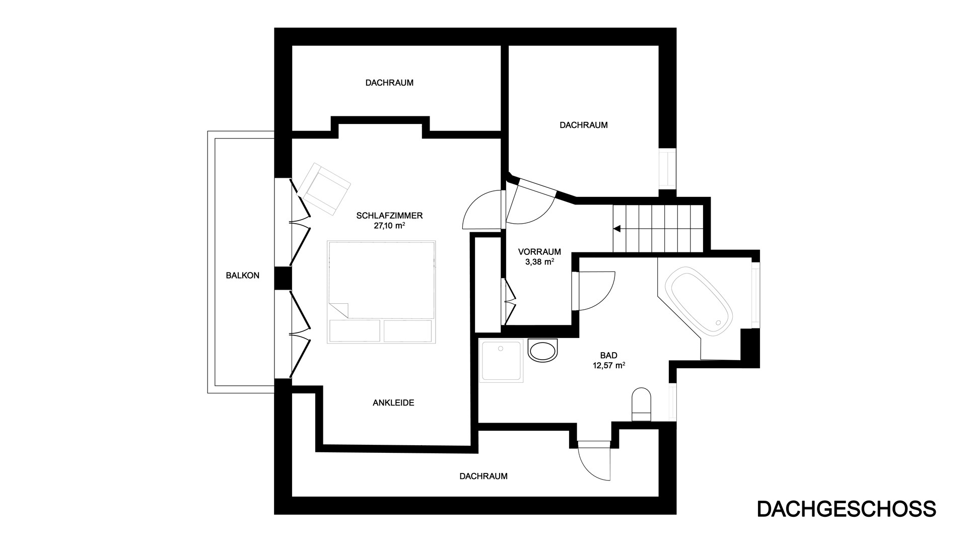 Zwei weitere Dachräume stehen als Stauraum zur Verfügung.