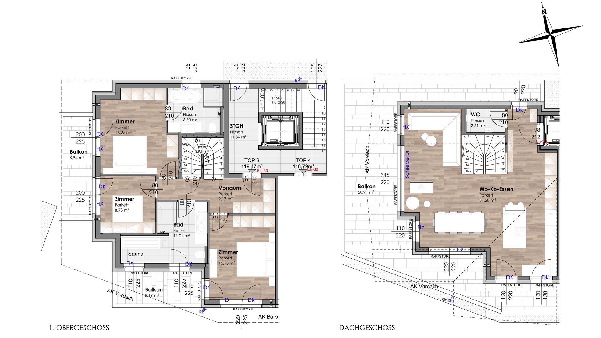 Hierbei handelt es sich um die ca. 119 m² große Penthouse-Maisonette-Wohnung Top 3 welche sich über das 1. Obergeschoss bis in das Dachgeschoss erstreckt.
