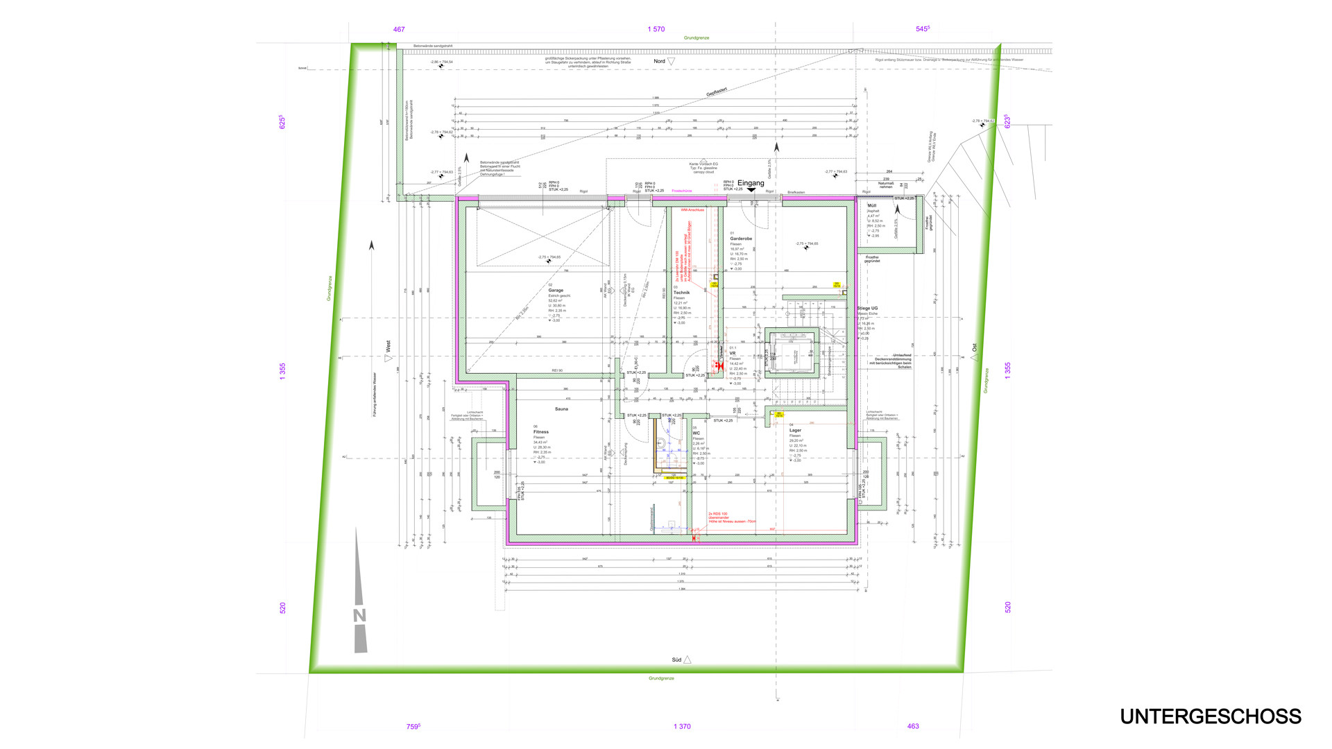 Im unteren Trakt der Liegenschaft befindet sich durch die leichte Hanglage des Objektes der großzügige Eingangsbereich mit hochwertigen Einbauten, welcher ausreichend Platz und Stauraum bietet. Die geräumige Doppelgarage, der eigene Wellness & Fitnessbereich mit Sauna, Dusche und Sportgeräten, befindet sich ebenfalls auf dieser Ebene.
