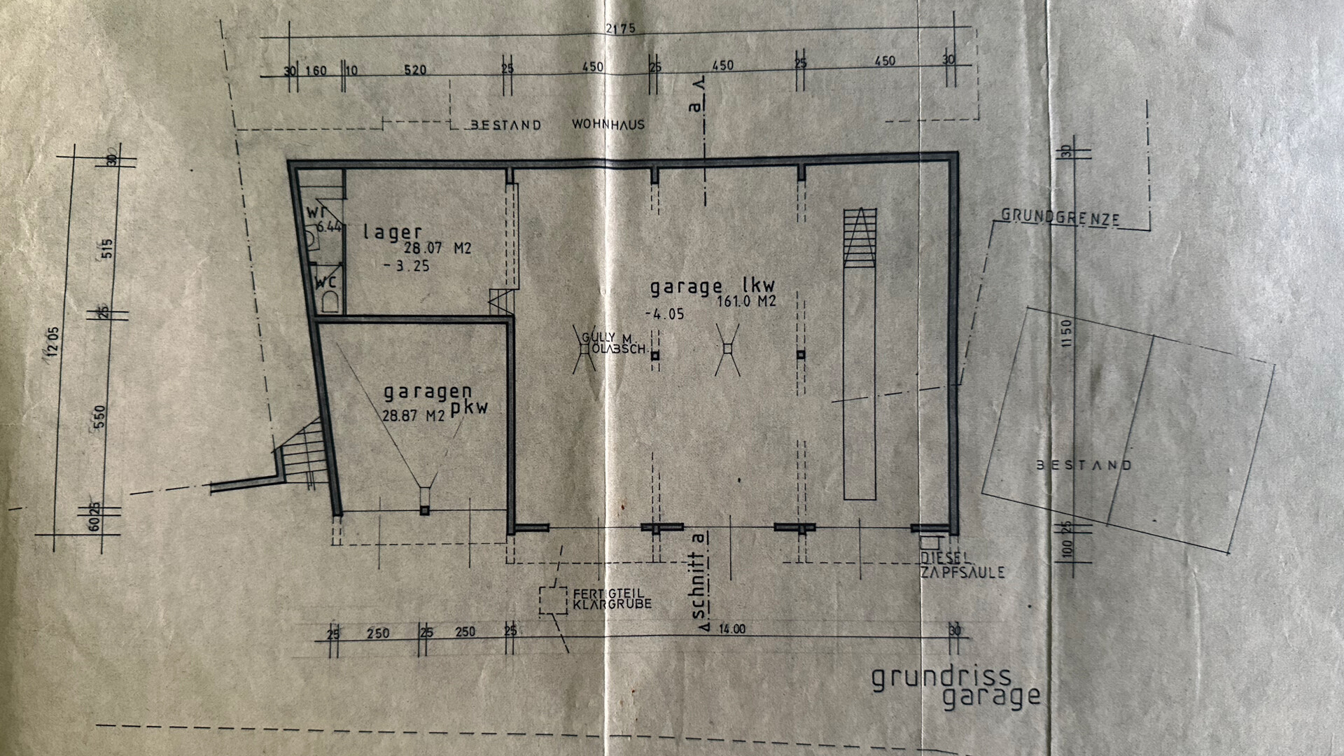 Die LKW-Garagen im UG sind derzeit an einen Maler und einen Elektriker um gesamt 1.200 € pro Monat vermietet.