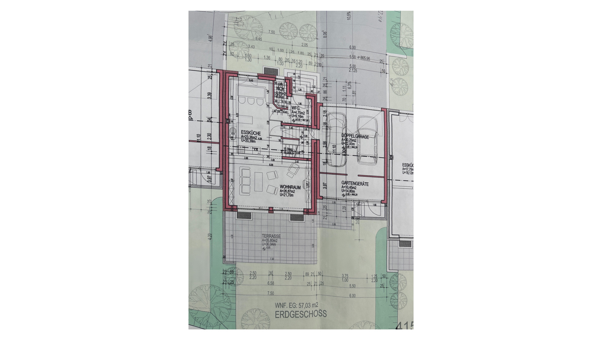 Durch die großzügige Doppelgarage mit dahinter befindlichem Sportgeräteraum gelangt man ebenfalls in den Garten.