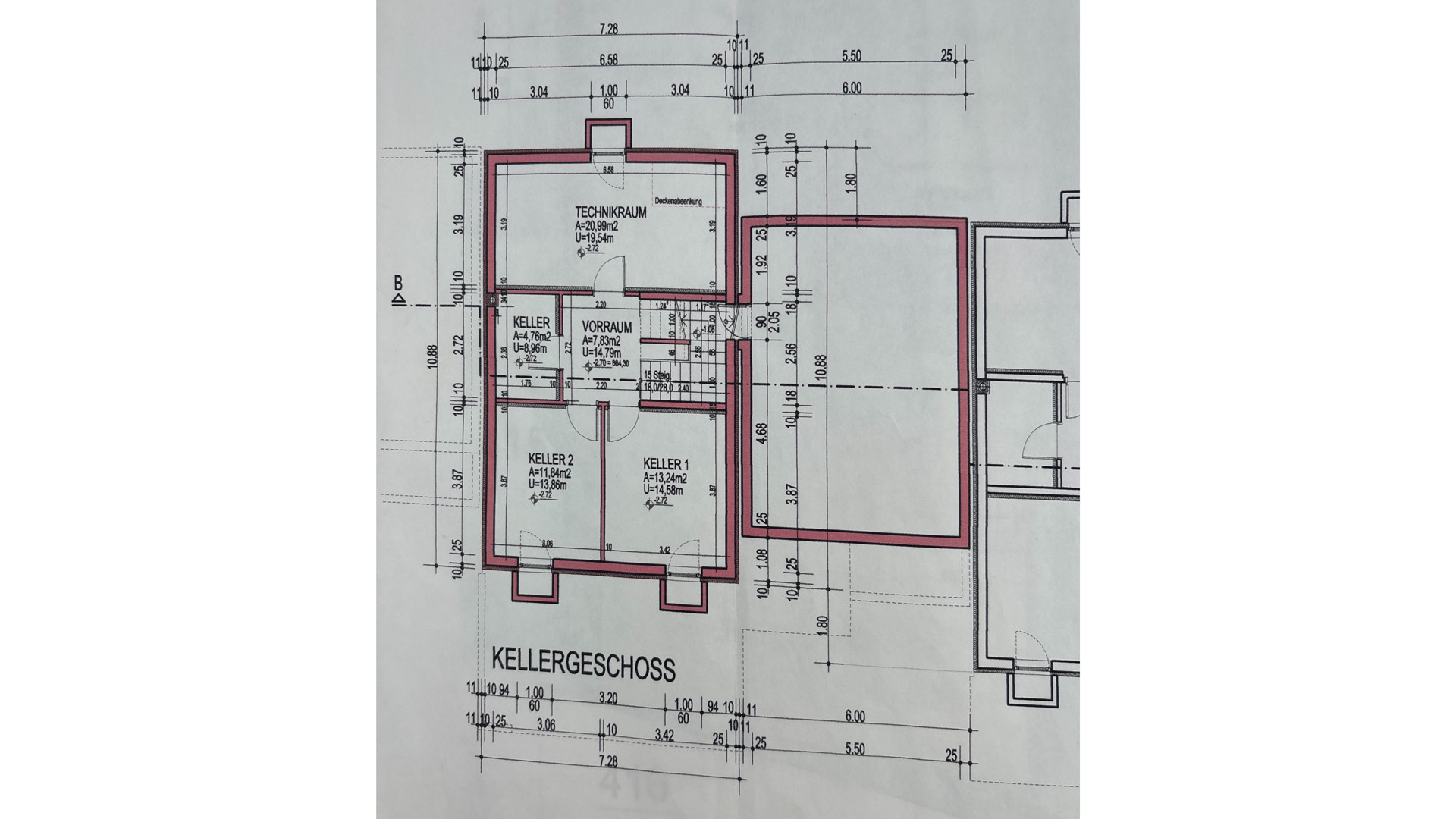 Im Untergeschoss befindet sich ein Hobbyraum, der Technikraum, der Hauswirtschaftsraum und ein Abstellraum.