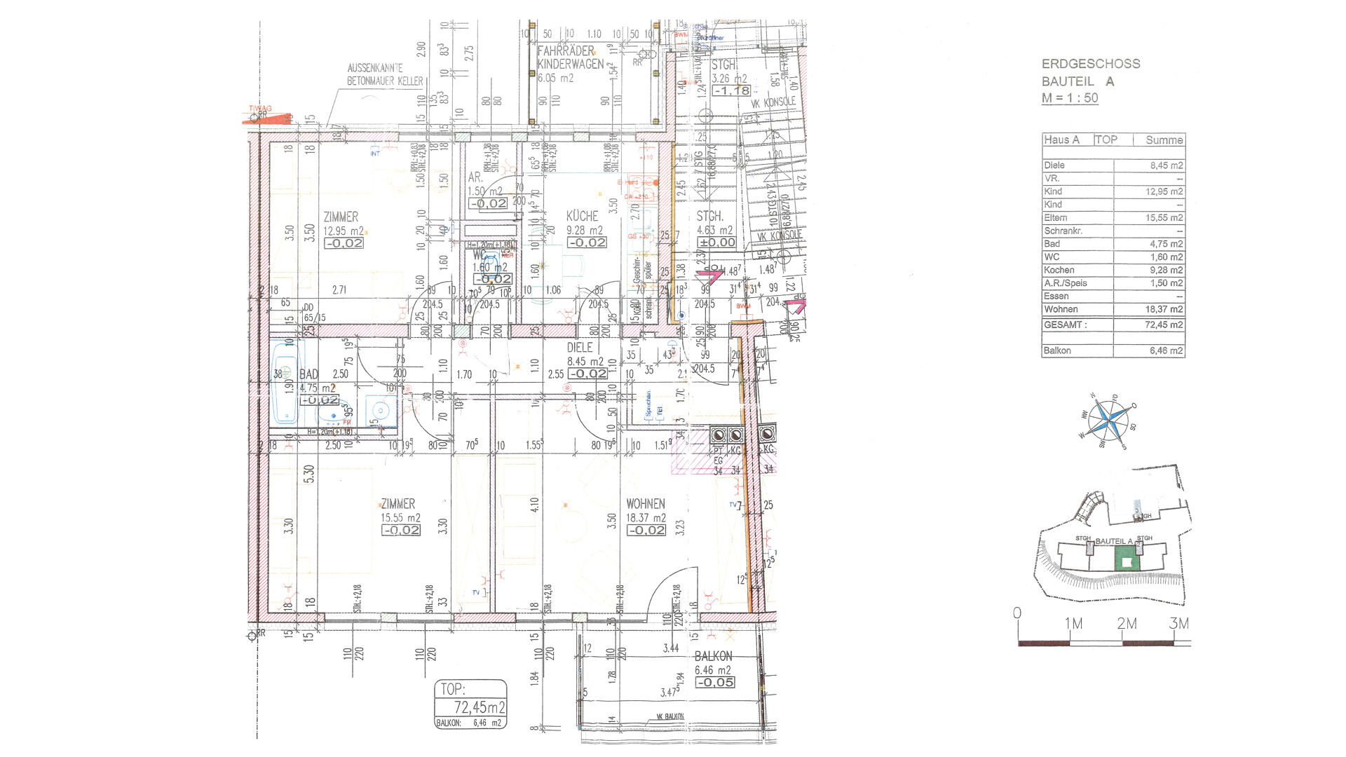 Zubehör sind ein ca. 3,4 m² großes Kellerabteil und ein PKW-Tiefgaragenabstellplatz.