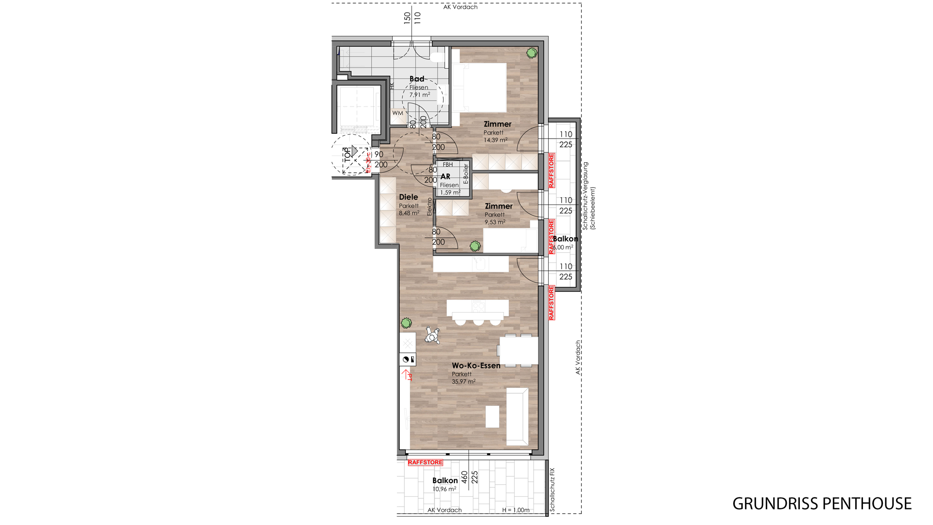 Zwei Balkone mit insgesamt ca. 17 m² bieten genügend Platz, um den Ausblick zu genießen und es sich gemütlich zu machen.