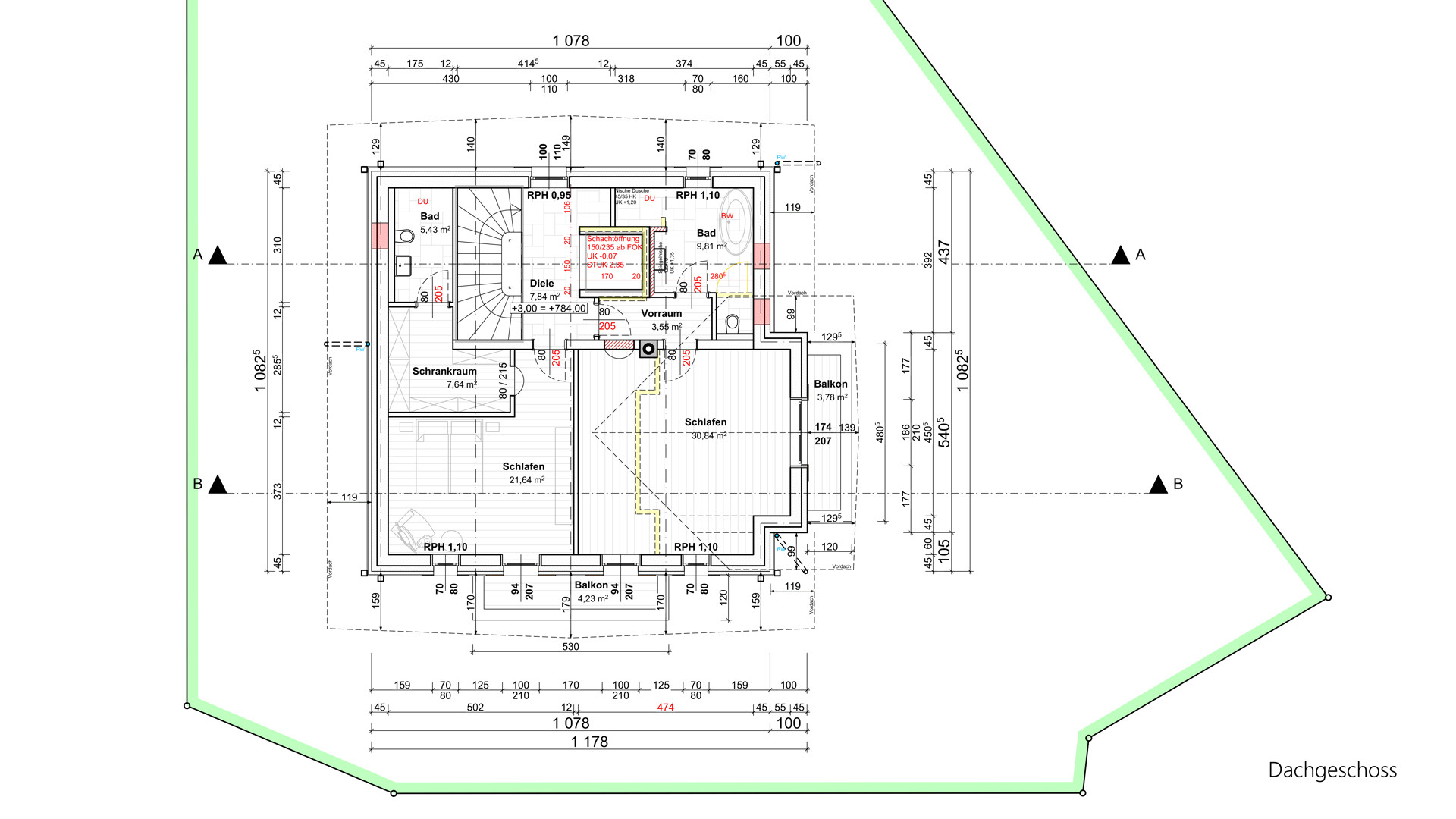 Im Dachgeschoss mit schöner Altholz-Dachstuhluntersicht befindet sich der 30 m² große Masterbedroom mit Ankleide und Bad en Suite sowie ein weiteres komfortables Schlafzimmer mit Ankleide und Bad en Suite.