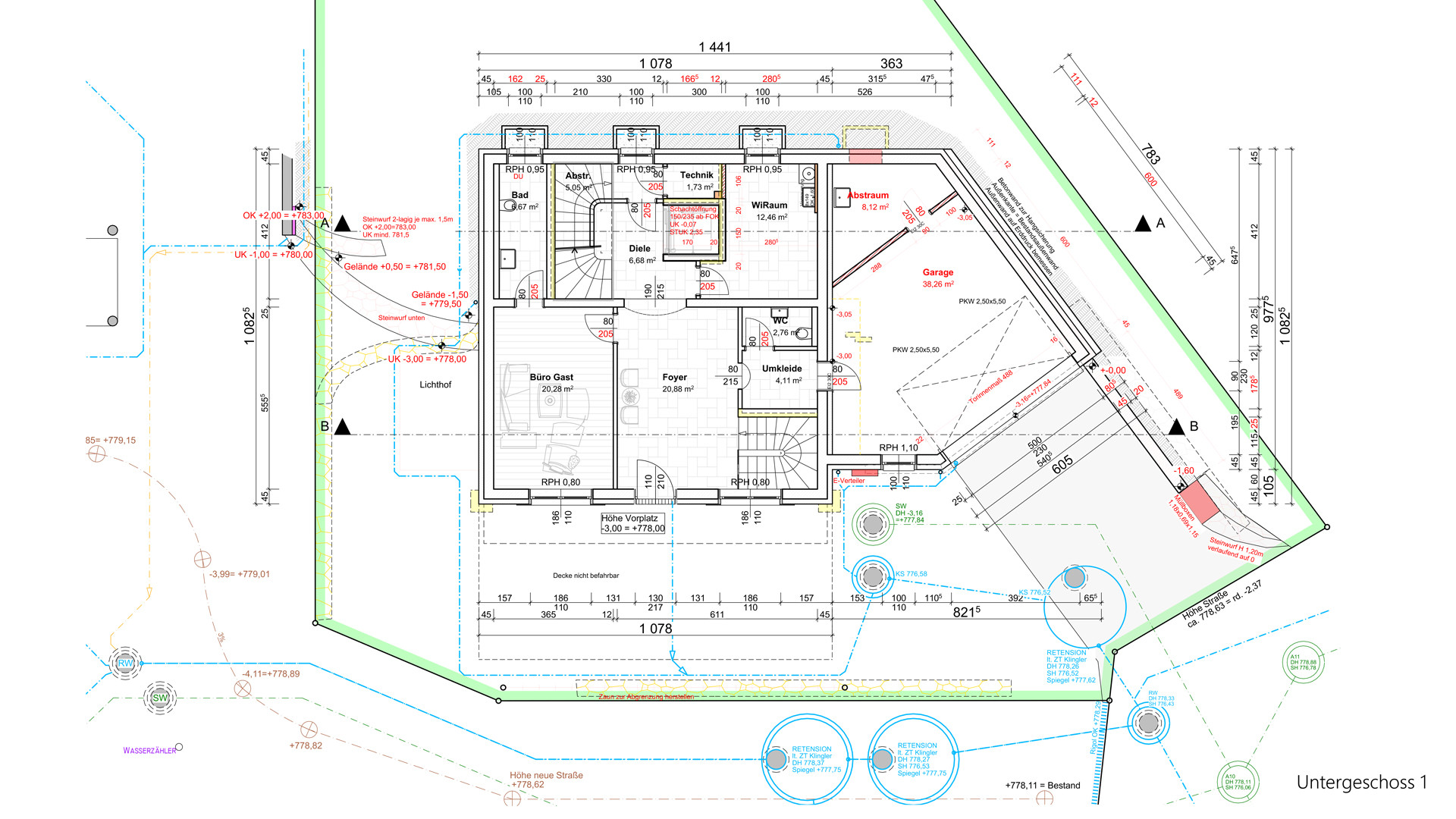 Ein weiterer knapp 20 m² großer Raum, welcher als Fitnessraum, Heimkino, Weinkeller oder der gleichen genutzt werden kann, sowie der Technikraum.