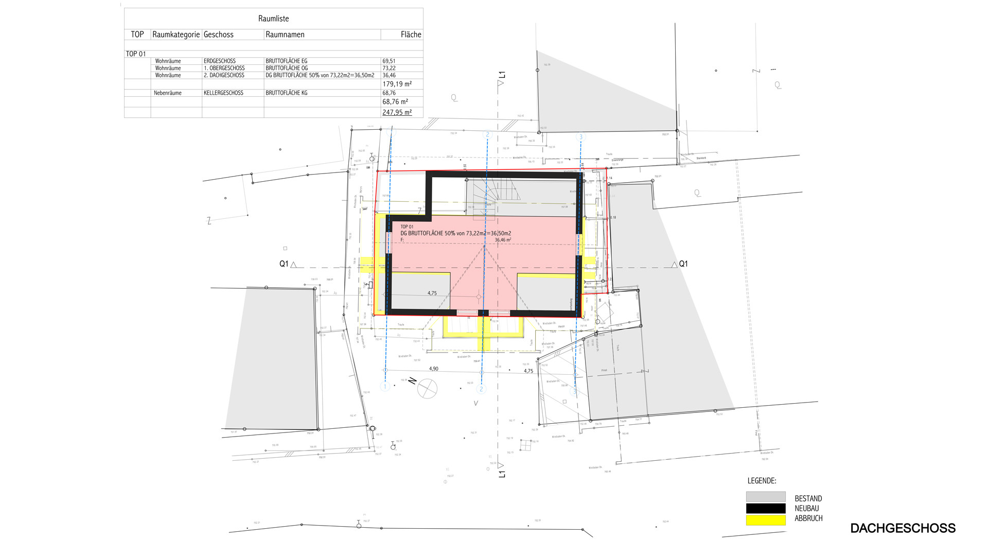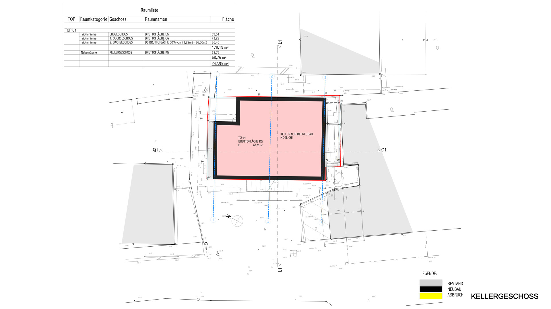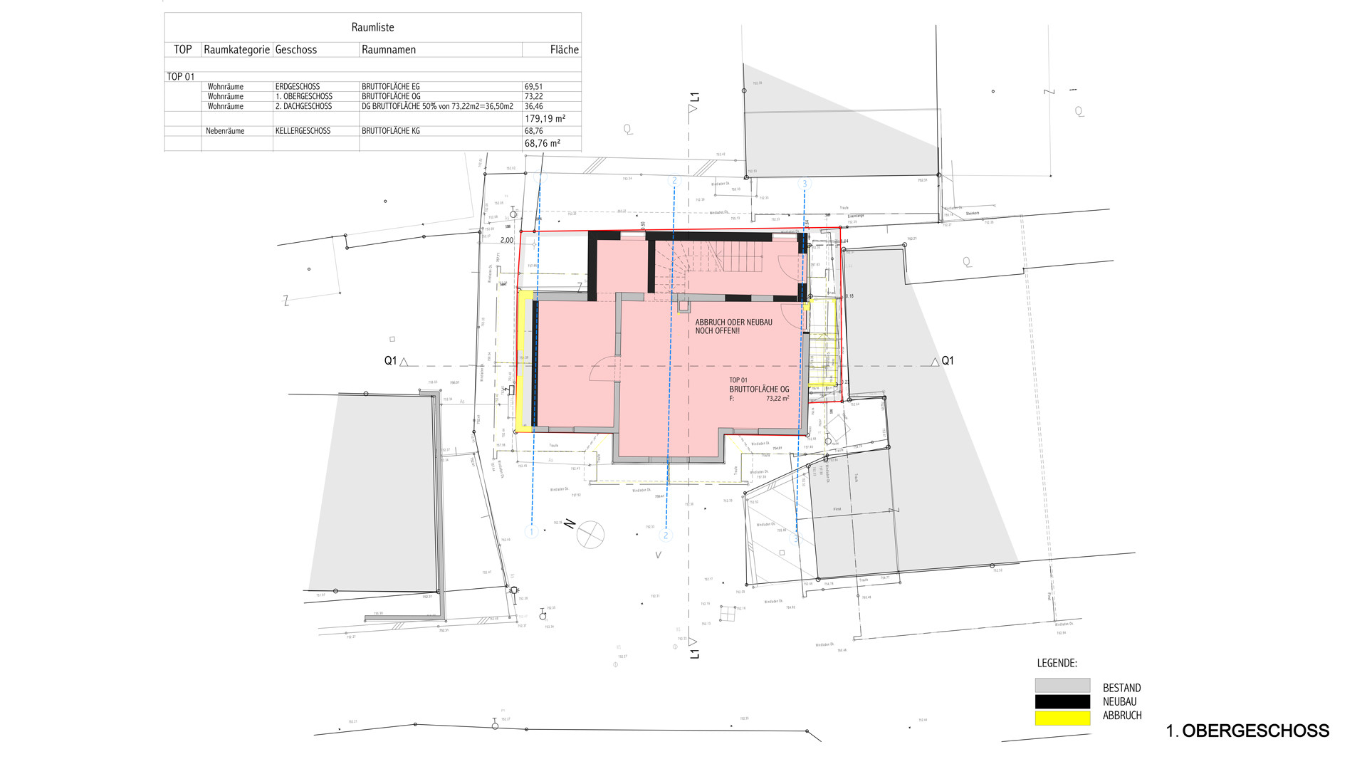 Das Bestandsobjekt weist derzeit auf 2 Geschossen eine Nutzfläche von ca. 93 m² auf.