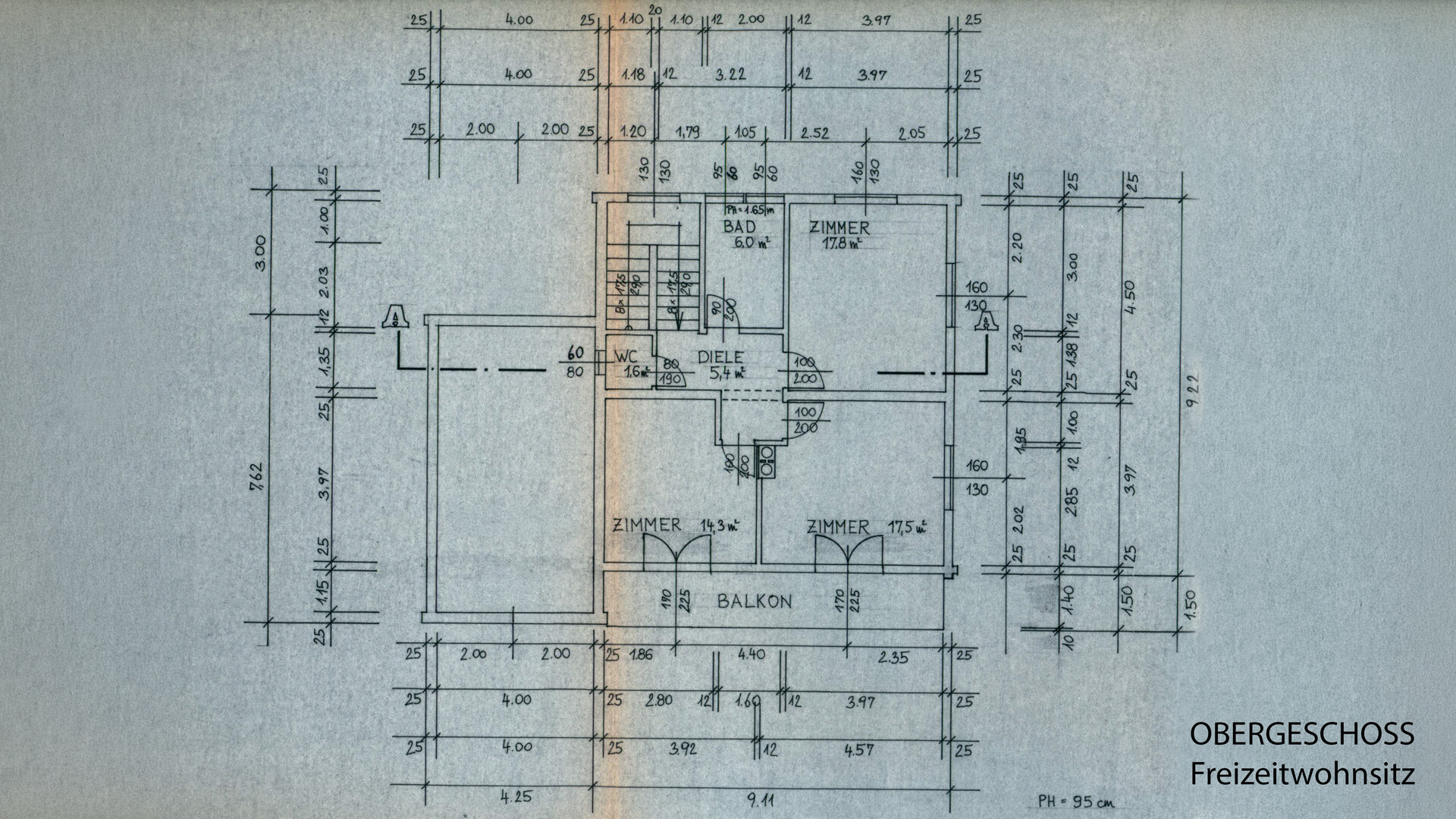 Über das Stiegenhaus gelangt man in das Obergeschoss, wo man von der Diele 3 Zimmer, ein Badezimmer und ein getrenntes WC erreicht.