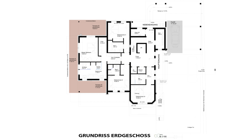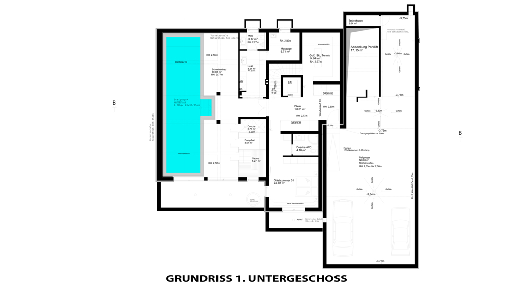 - Tiefgarage mit Autolift für 8 PKW, 2-3 Carport- und 4 Außenstellplätze