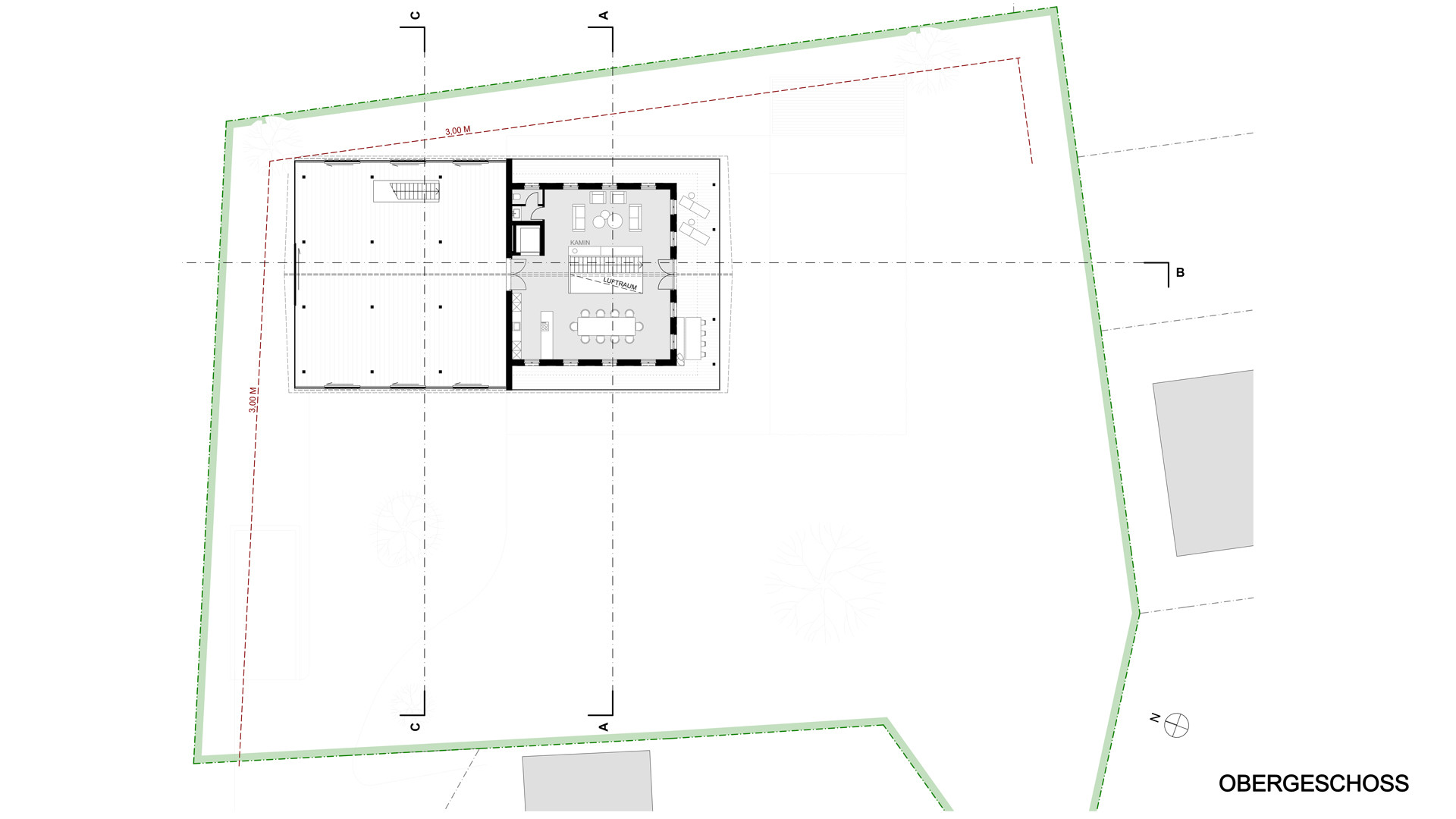 Auch auf dieser Ebene befindet sich hinter dem Wohnraum ein knapp 200 m² großer Raum zur vielfältigen Nutzung.