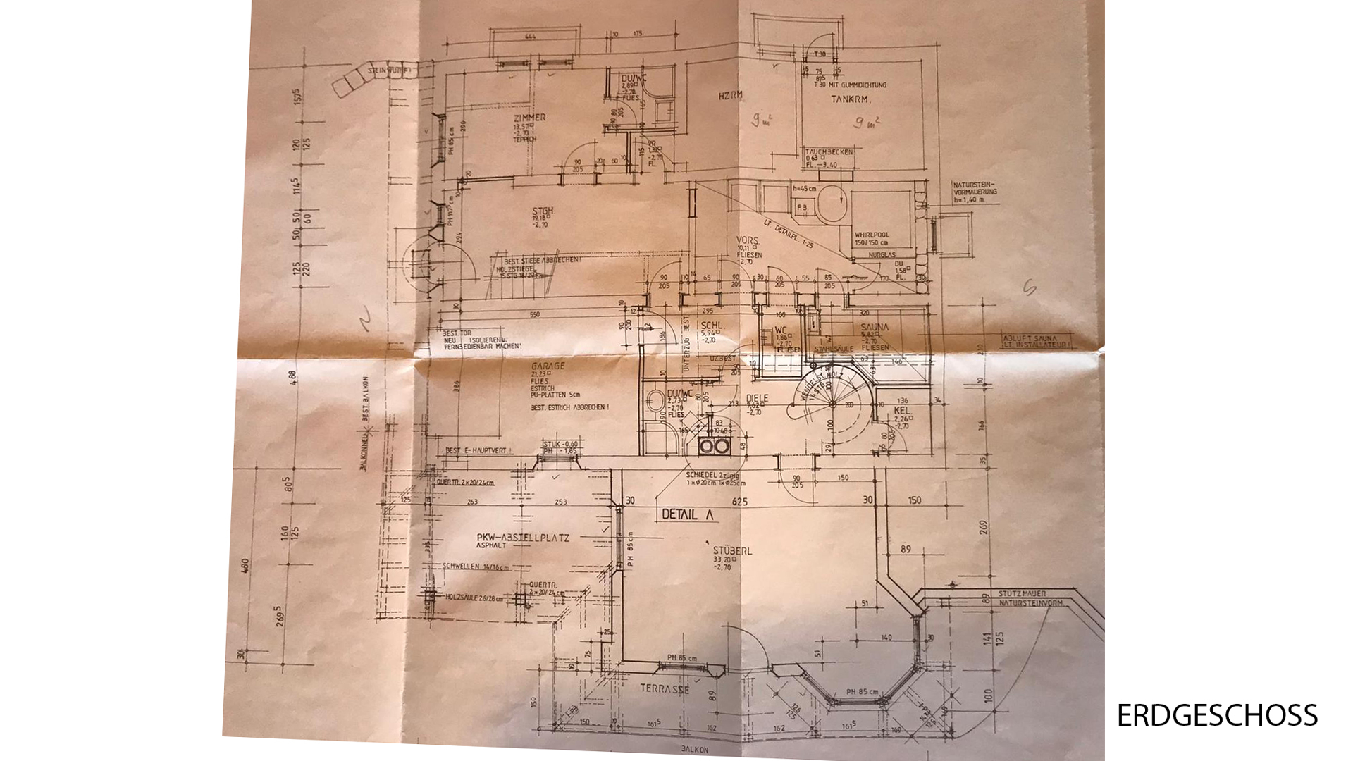 In diesem Geschoss befindet sich ein Wellnessbereich mit Sauna, Whirlpool, Tauchbecken, Dusche, WC und Ruheraum, ein Gästeschlafzimmer mit Bad en suite sowie ein gemütliches "Stüberl" mit Küche, Kachelofen und Essbereich sowie Ausgang auf eine Terrasse. Weiters ist ein Kellerraum, der Heiz- und Technikraum und die Garage auf dieser Ebene.