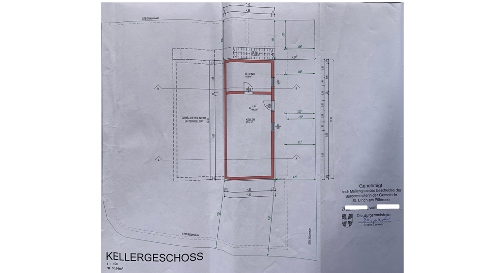 Das Untergeschoss ist als großer Praxisraum/Studio eingerichtet, an den sich ein weiterer, derzeit nicht ausgebauter Raum anschliesst, in dessen hinterem Bereich die Haustechnik untergebracht ist.