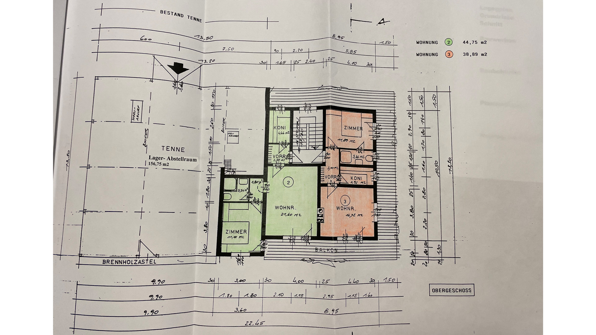 Eine Wohnung im Erdgeschoss mit 86,72 m² und zwei Wohnungen im Obergeschoss mit 44,75 und 38,89 m².