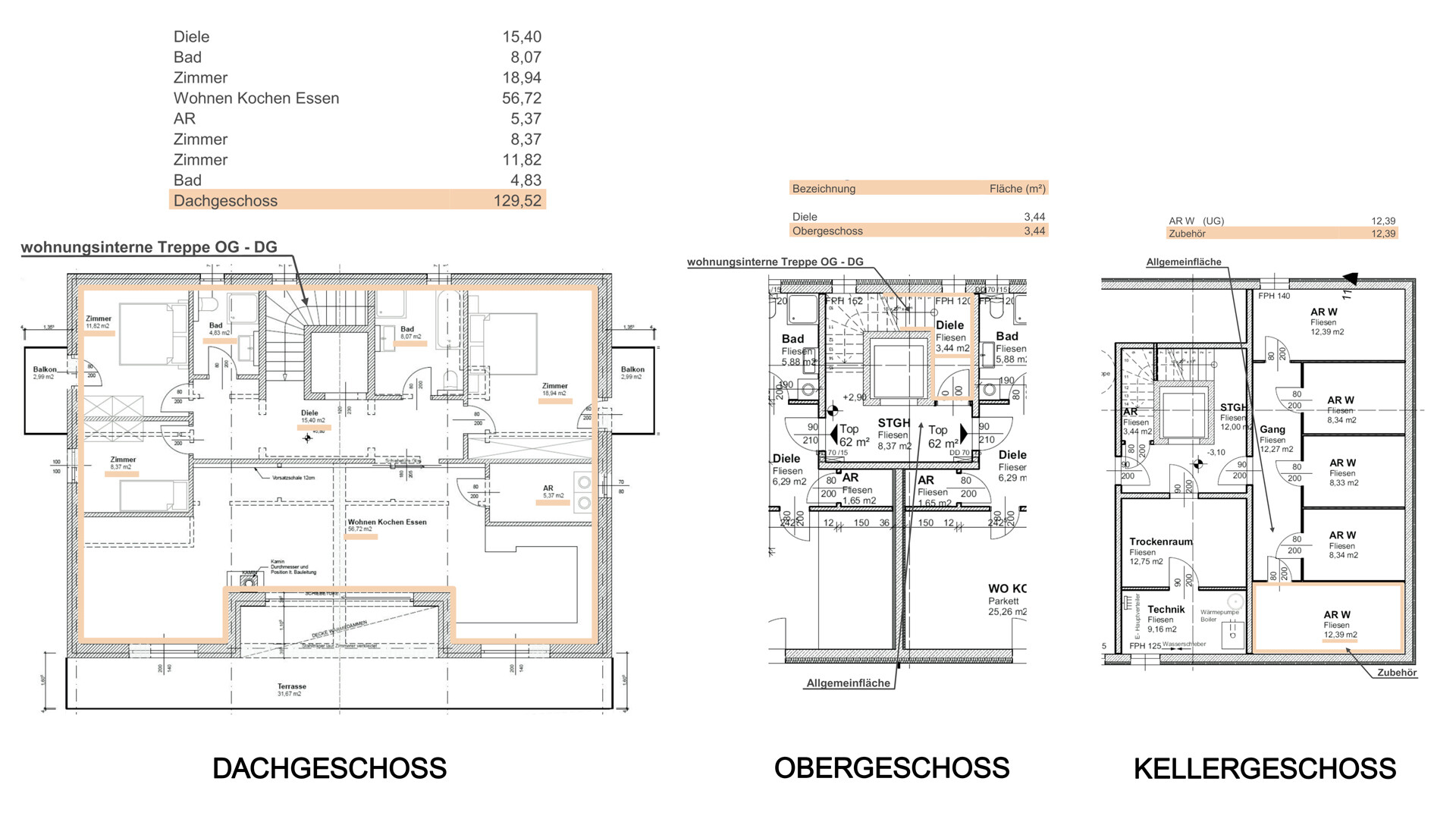 Im Obergeschoss befindet sich der Eingang in das Penthouse und die Diele. Über eine innenliegende Treppe gelangt man sodann in das Dachgeschoss. Mit dem Lift gelangt man ebenfalls direkt in das Penthouse.