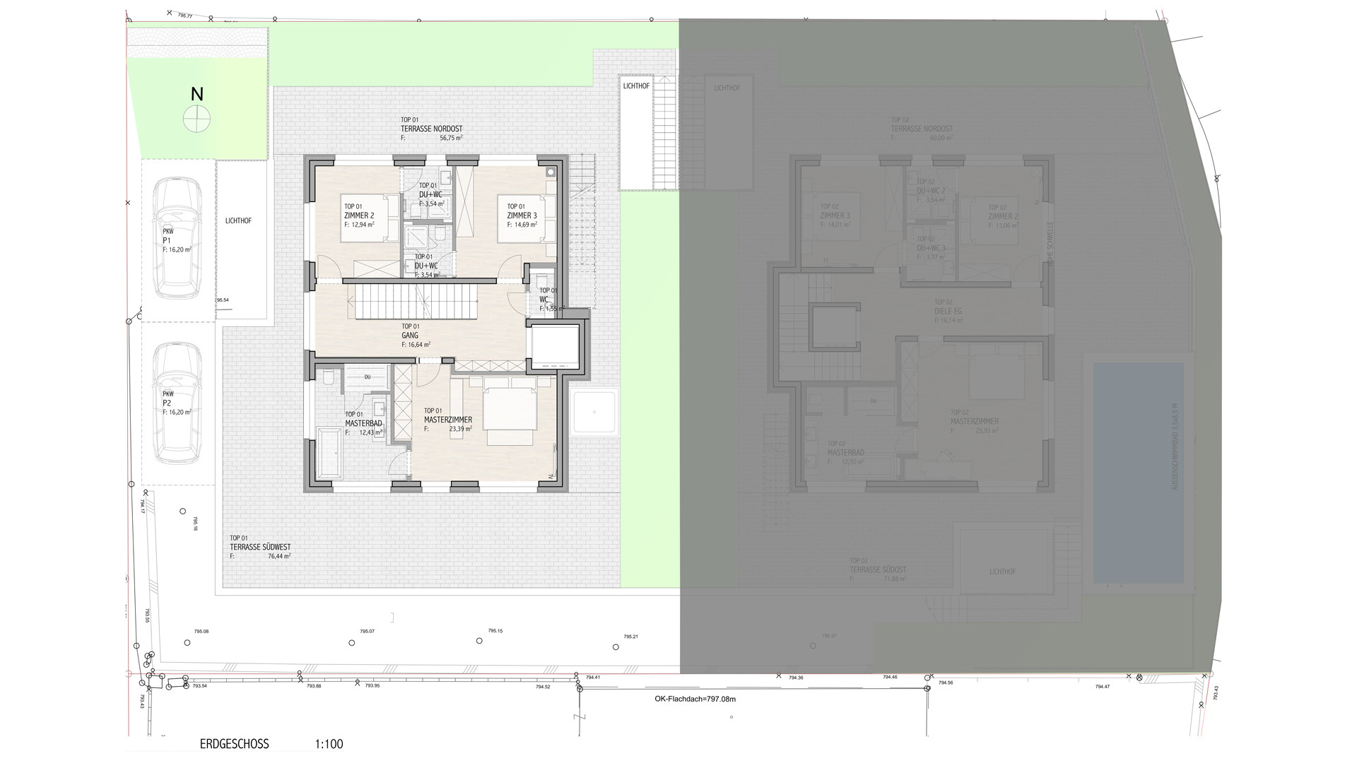 Der Masterbereich verfügt über eine Ankleide sowie ein großes Badezimmer mit Dusche, Wanne, Doppelwaschtisch und WC.