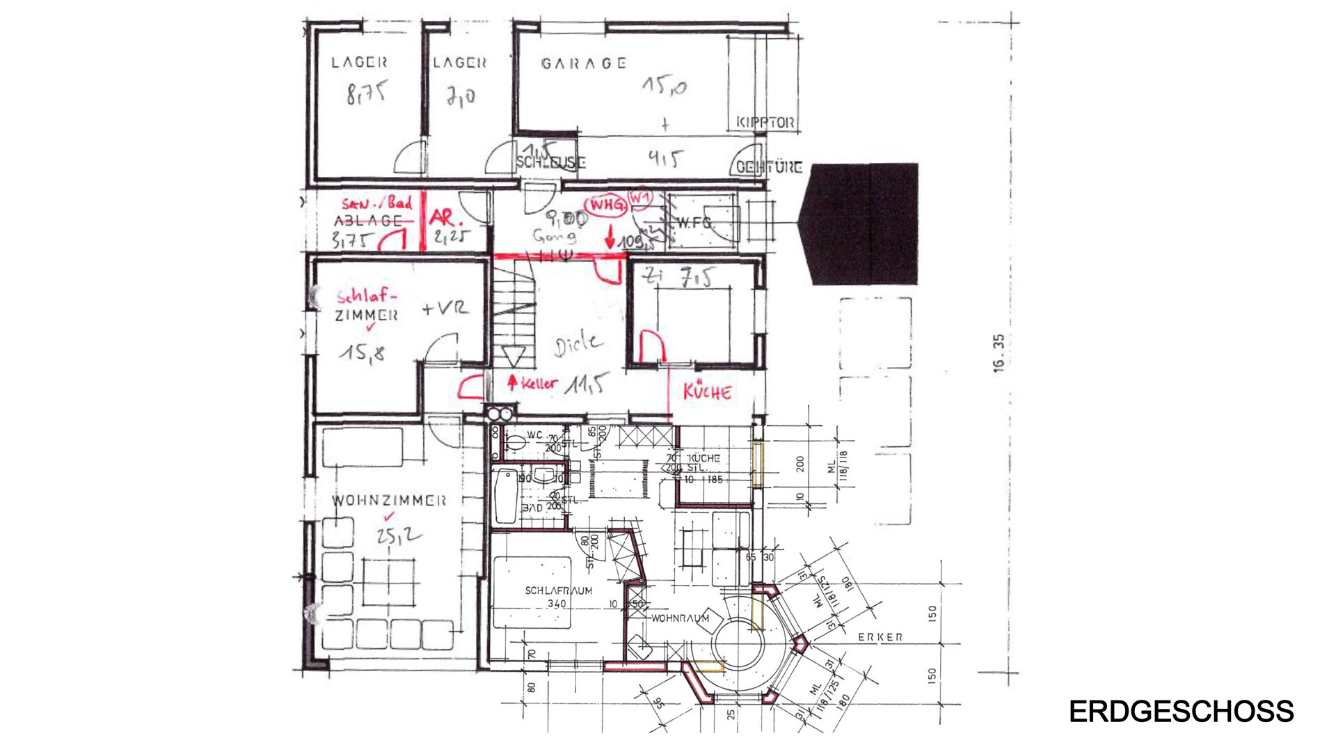 Im Erdgeschoss ist eine Garage sowie 2 von außen zugängliche Lagerräume, weiters eine eigene Wohnung mit ca. 110 m2 Wohnfläche vorhanden.