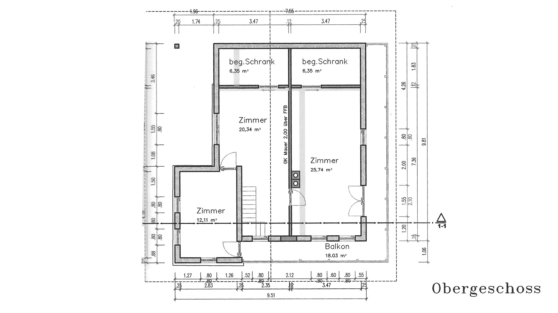Ein zweites Schlafzimmer mit WC, von welchem man ebenfalls auf den Balkon gelangt, sowie ein großer Vorraum mit Ankleide, welcher in ein weiteres Schlafzimmer umfunktioniert werden kann, befinden sich im Obergeschoss des Hauses.