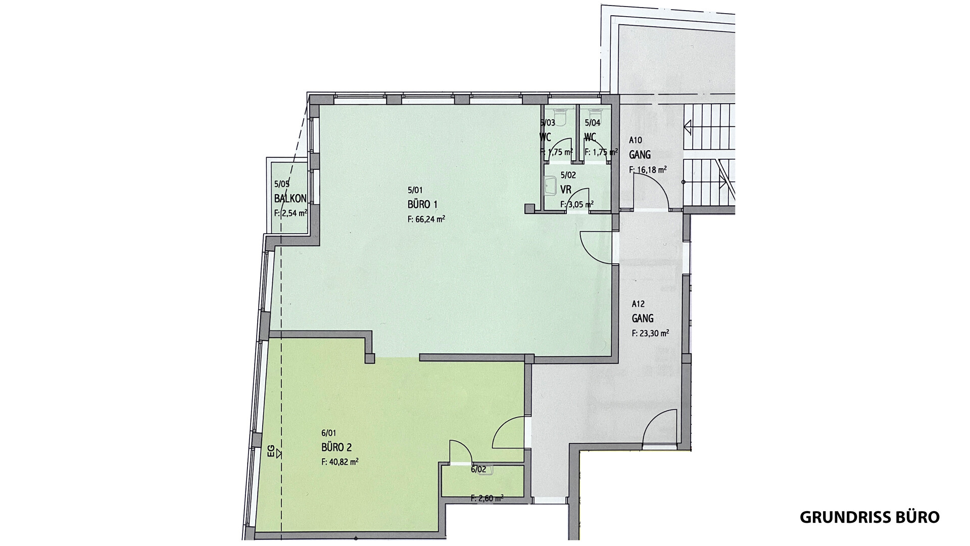 Es handelt sich um 2 Büroeinheiten mit 73 und 43 m² Fläche, also gesamt 116 m².